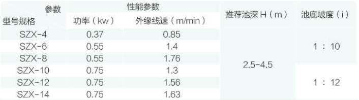 工作原理:SZX 型中心傳動濃縮機(jī)采用蝸輪蝸桿(<φ8m 可采用擺線針輪減速機(jī),>φ14m 采用中心回轉(zhuǎn)齒輪)傳動,刮泥壁上設(shè)計有縱向攪拌柵條,刮臂旋轉(zhuǎn)時柵條起攪拌作用,加速活性污泥的下沉,刮泥板外緣線速度≤3m/min。整個刮泥機(jī)構(gòu)可以手動提升400mm (用擺線針輪減速機(jī)不可以提升)。